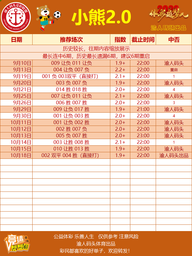 【注意:大重庆足球4倍财韵、10倍幸韵、篮球2.0食韵本轮中出则暂停更新,未来一段时间将保持大重庆6个主打方案】